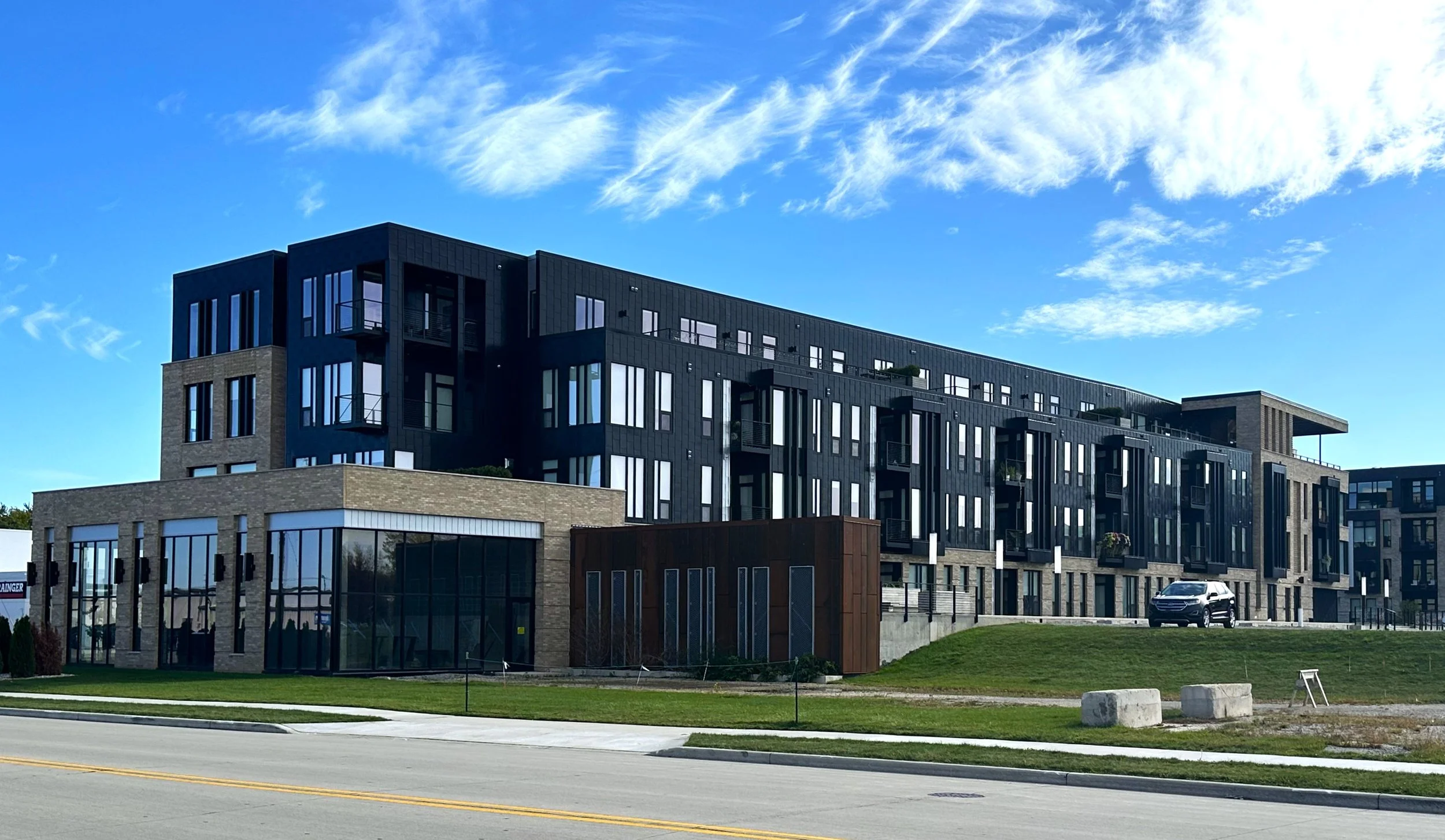 Phase II of this large multifamily residential project added a second, five-story building boasting an impressive 88,000 square feet. This building incorporates a coffee shop in its lower level along with both open and private parking. The rooftop balcony offers impressive views of Lambeau Field, and is a short walk away for residents who want to attend a game! Other amenities include a clubroom, pet wash area, and an outdoor gas grilling area.